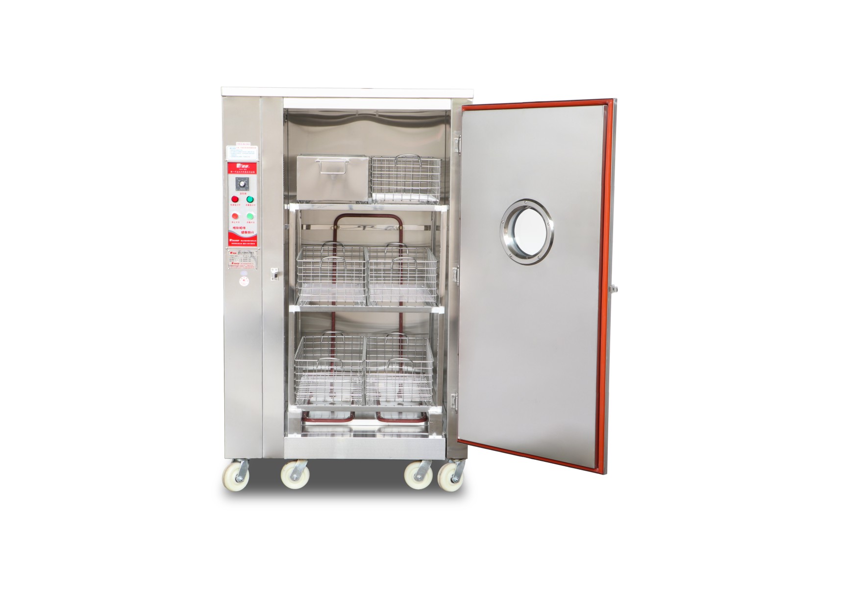 4.全不锈钢结构并采用低热负荷金属红外线发热管、环保矿物保温材料、毛条门密封材料等,使该产品具有耐用、安全、可靠、环保等特点。