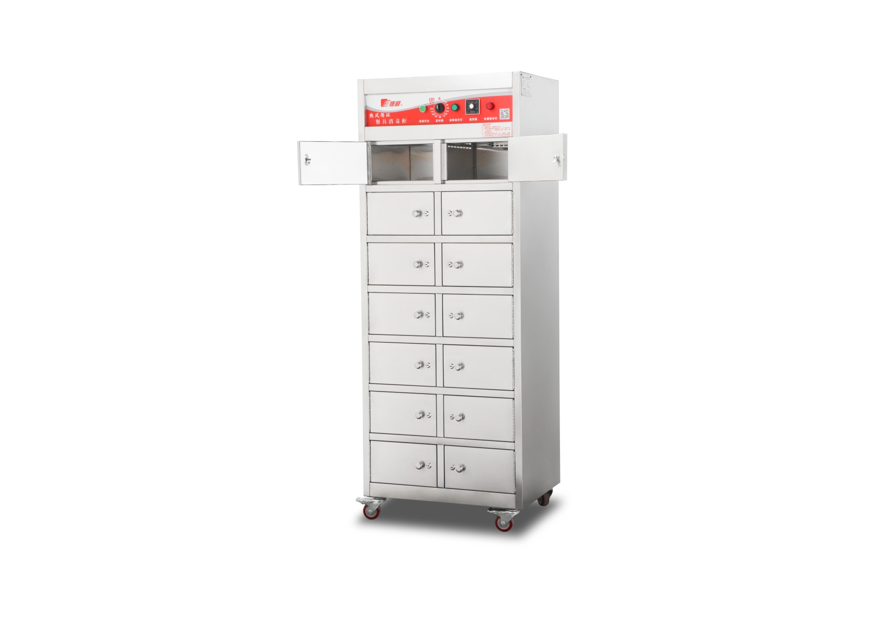 分隔式远红外线热风循环餐具消毒柜适合场地宽裕,一人一个,高度保障个人卫生。适合不锈钢、密胺等各类餐具消毒或保洁。